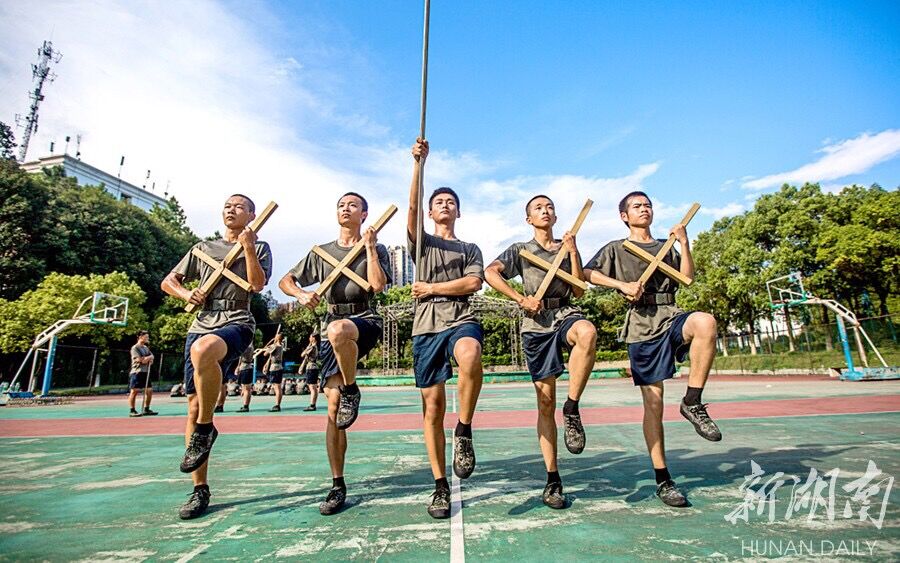 军训教导队集训时,队长经常带领队员是一个动作练上百遍。一天训练下来,队员们衣服都汗湿好几遍。