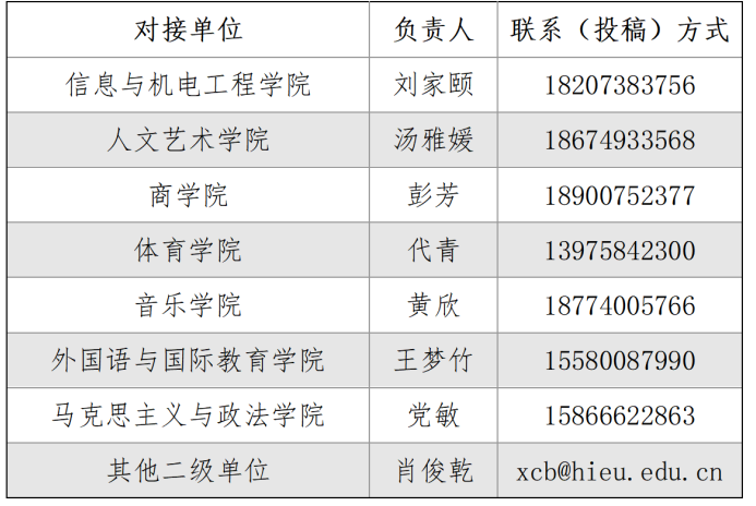 参赛者通过对接不同联系负责人进行投稿: