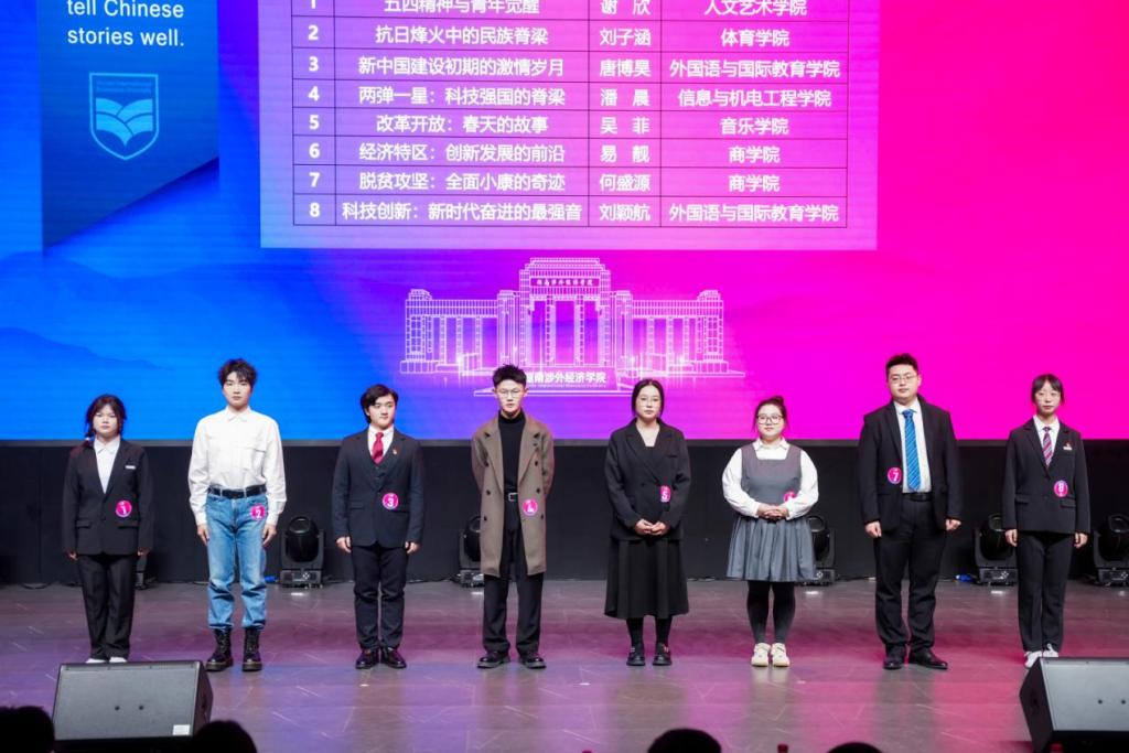 在比赛的演讲环节,从内忧外患时的觉醒抗争,到百废待兴时的艰苦奋斗;从改革开放的创新探索,到新时代的辉煌成就,选手们用生动语言、真挚情感,全方位展现新中国的奋斗历程。各位选手用流利外语讲述中国故事,如分享“十八洞村”等贫困地区蜕变故事,让大家领略了新中国脱贫攻坚的伟大成就。