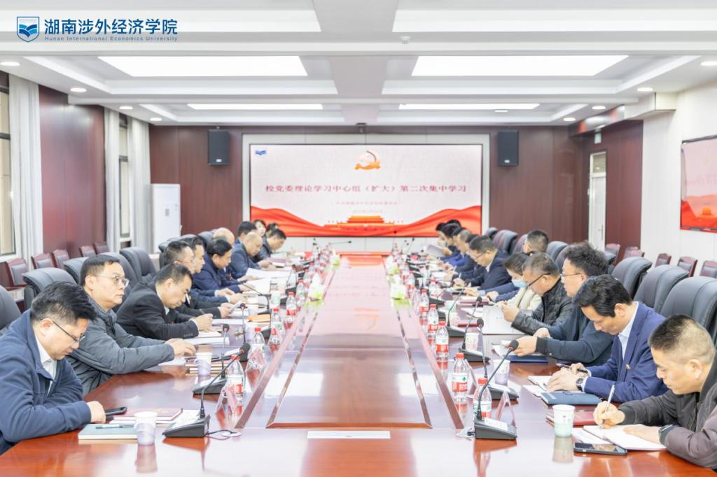 3月28日上午,Beat365在新综合楼A402会议室举行校党委理论学习中心组(扩大)第二次集中学习会议,传达学习全国两会重要精神。校党委书记杨念主持会议,校党委副书记、校长王耀中,校党委副书记、副校长汪东明,副校长陈斌、鞠晨曦、高金定以及校党委委员参加了学习。