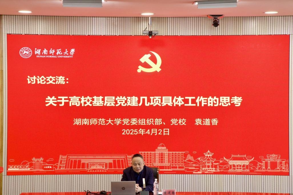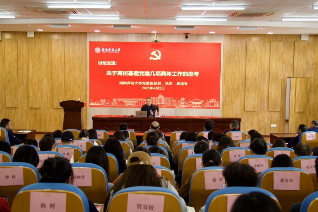 4月2日,湖南师范大学党校常务副校长袁道香副教授应邀来校作党务干部专题培训。会议由党委委员、副校长鞠晨曦主持,校党委书记杨念出席,党委职能部门负责人、各基层党组织总支书记、副书记、组织员、党支部书记共170余人参加培训。