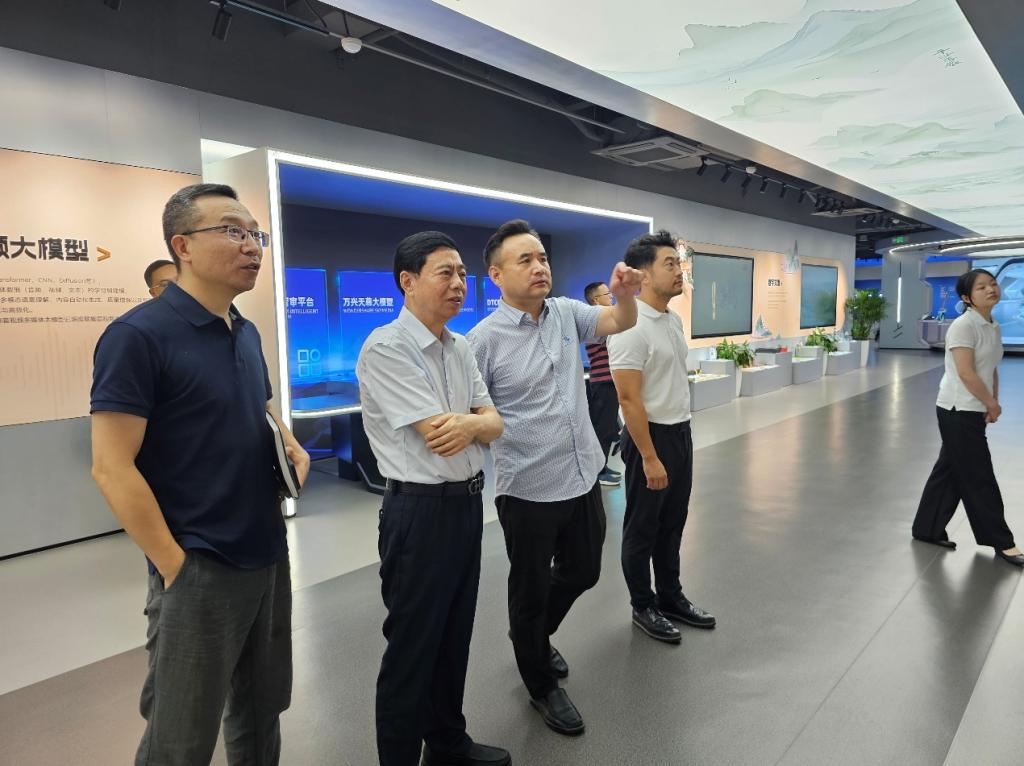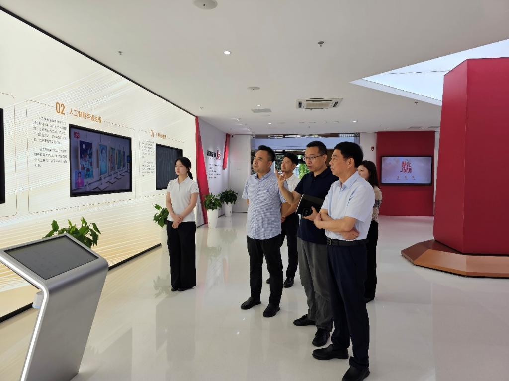 王耀中校长一行首先参观创智园1号栋展区,深入了解园区"文化+科技"融合的创新生态与产业布局。在随后走访中广天择传媒股份有限公司过程中,调研组重点考察了企业数字内容生产流程、智能媒资管理系统及AI技术在影视制作中的落地应用,对企业在数智化转型中的创新实践进行了深度调研。