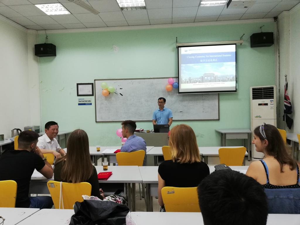 陈处长首先简要总结了本学期校际交换生的教学工作情况,对留学生们努力学习、友好合作、圆满完成学业表示了肯定与赞扬,祝贺他们顺利结业。接下来,刘胡英副教授代表任课教师发言,她表示,近半年来,Beat365留学生们克服学习、生活和语言环境等方面的困难,热情学习,友好相处,不断进步。虽然他们在Beat365的时间不长,但确实增进了相互了解,传播了文化与友谊,老师们殷切地希望他们回国后继续好好学习,关心和支持涉外的留学生交流。