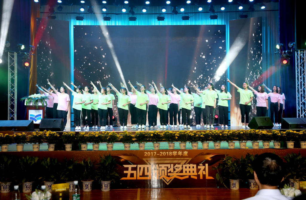 弘扬五四精神,共筑青春梦想。2017-2018学年度“五·四”颁奖典礼在《我要飞得更高》的歌声中圆满落幕。恰同学少年,风华正茂。涉外人一直在奔跑,终有一天,会在天空留下自己的痕迹。