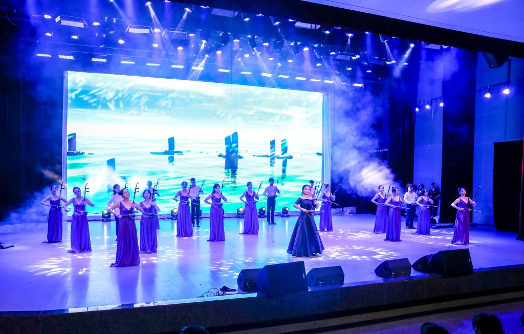 艺术节开幕式的第二部分为文艺表演。文艺表演在歌舞《祝福祖国》中开场,歌唱新时代,舞出新征程;音乐学院舞蹈学专业2015级带来的女子群舞《情深意长》,表演者着以彝族服饰,手捧军绿布鞋,伴随着节奏跳动,向现场观众展示了红军过雪山时彝族同胞对红军的关爱之情;国家一级演员傅以琳带来的女声独唱《那片海》、《打虎上山》,两首风格不同的歌曲,演唱者倾注的情感也随之变化,躁动的音符将现场的气氛推向高潮;罗夏越、罗伟胜、姚佳佳带来的古琴、箫、舞蹈合集《心游太玄》,琴声悠扬,箫声嘹亮,舞姿曼妙,赢得阵阵掌声。