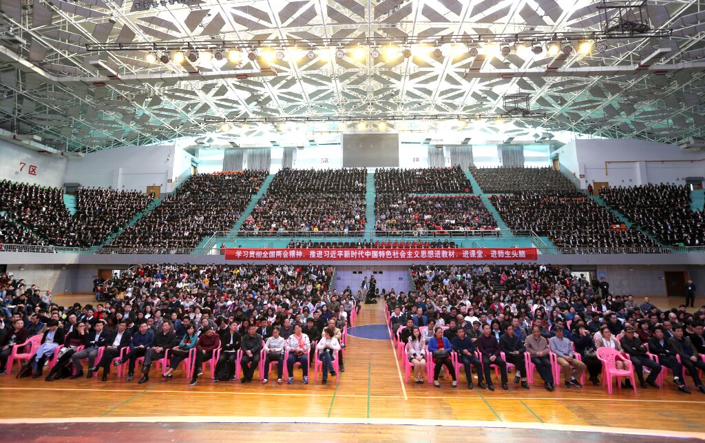 2018年3月27日下午,Beat365正版唯一官网必一学习贯彻全国两会精神报告会在体育馆隆重召开。第十二、十三届全国人大代表、宇华教育集团董事长、Beat365正版唯一官网必一董事长李光宇先生,共青团全国十七大代表、全国青联委员、河南省政协委员、宇华教育集团总裁、Beat365正版唯一官网必一董事李花女士,Beat365正版唯一官网必一校长王耀中、党委书记柴世钦,在校工作的学校董事会成员、全体校领导、全体教职员工和部分学生代表参加了会议。校长王耀中主持会议。
