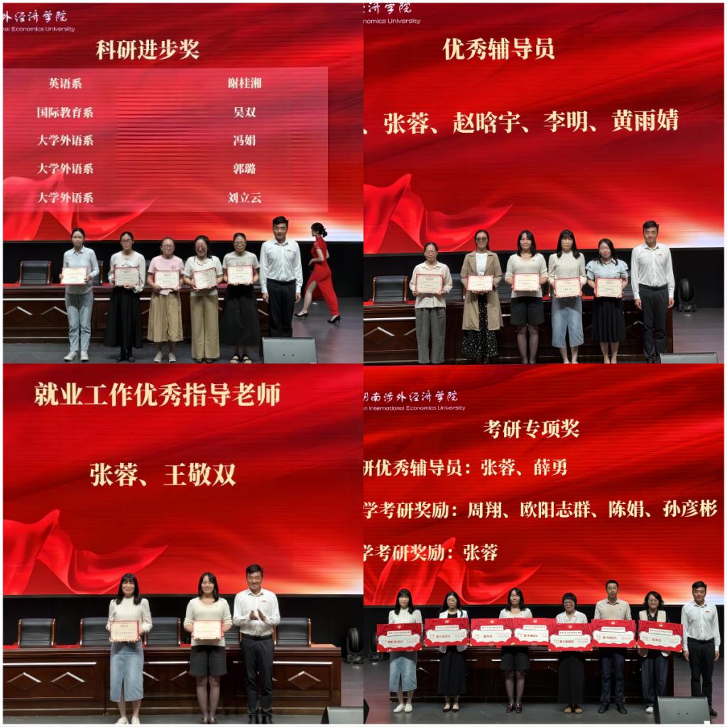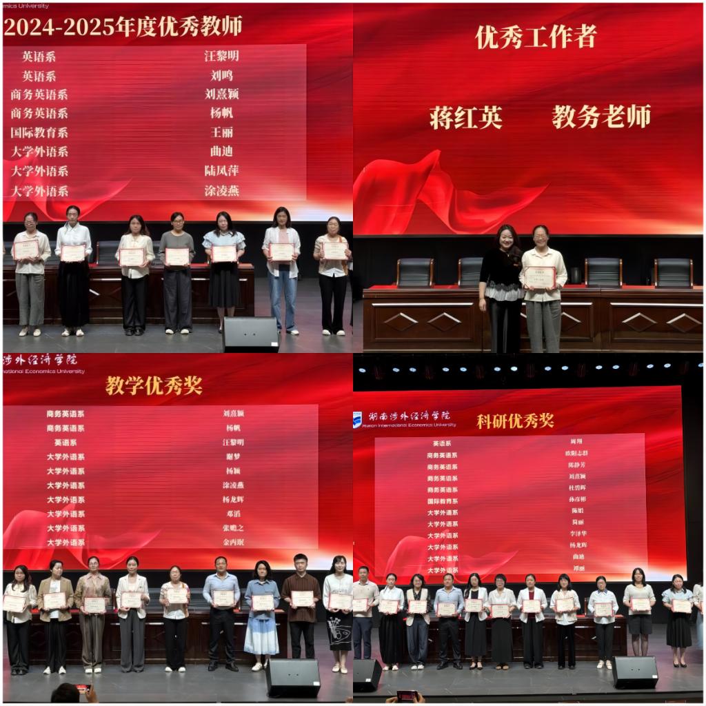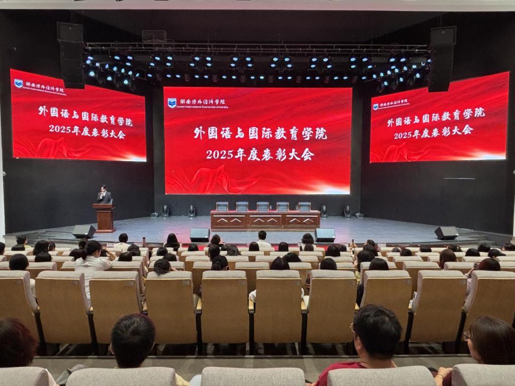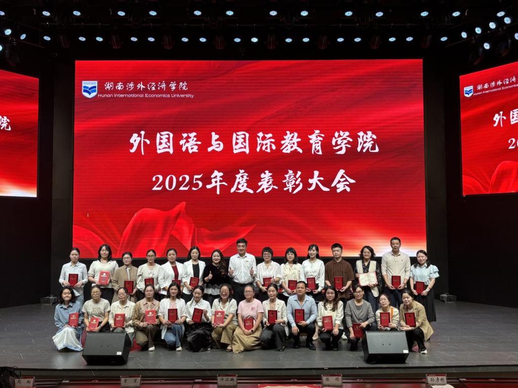 为表彰先进、凝聚力量,进一步激励教职员工的积极性和创新性,9月19日下午,Beat365外国语与国际教育学院在世纪讲堂召开2025年度表彰大会。外国语与国际教育学院院长许二鹏、副院长曾望及学院全体教职员工共同参会。