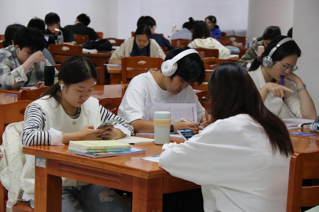 同时,各二级学院也十分重视图书馆考研自修室的服务工作。商学院党总支书记李向明亲自牵头部署,针对本学院图书馆考研自修室的备考学子建立了专门的“一日三巡”服务管理机制,安排专门的老师在上午、下午和晚上三个不同时间段到考研自修室进行巡查,及时了解学生的学习状态和需求,和图书馆一起为学子们打造出一片沉浸式学习“根据地”。考研自修室内浓厚的学习氛围已成为常态,每个人都在用专注与坚持诠释着“奋斗的青春最美丽”。