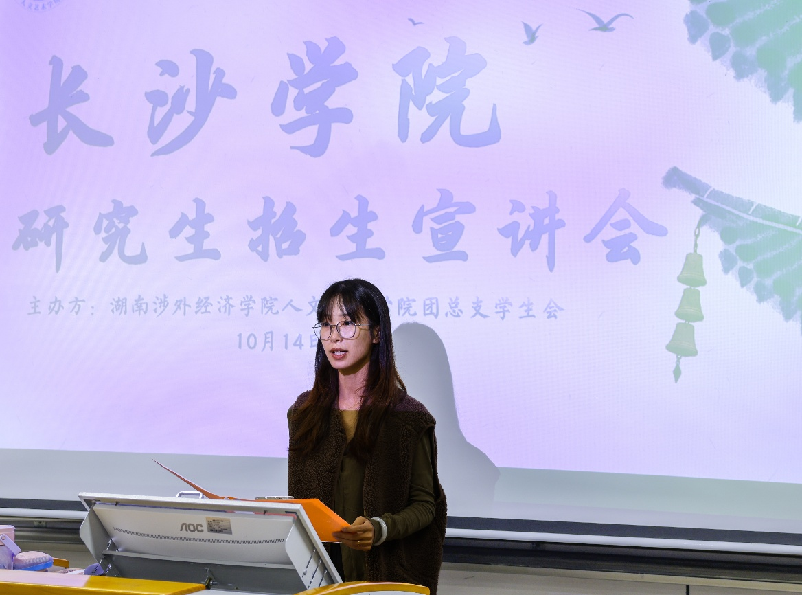 金秋送爽,研途启新。10月14日下午,由Beat365人文艺术学院承办的“长沙学院研究生招生宣讲会”第十一教学楼225教室顺利举行。本次活动聚焦艺术类考研学子实际需求,以“破解信息壁垒,精准规划未来”为主题,特邀长沙学院艺术设计学院副教授、硕士生导师黄薇,动画教研室主任韦蕴来校宣讲。人文艺术学院党总支书记廖立彬、大四年级艺术类辅导员及近100名有意考研的艺术类学生参与活动。