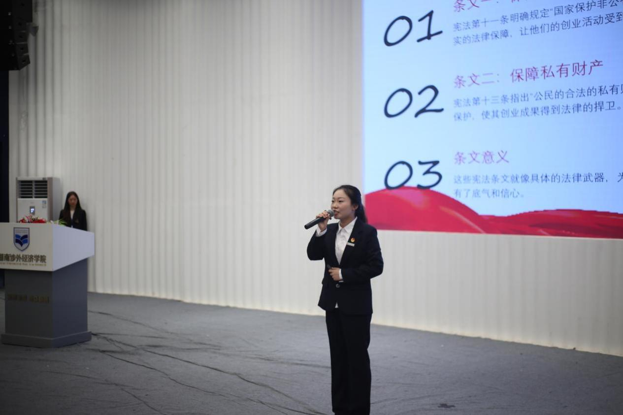 10月17日中午,“学宪法、讲宪法”演讲比赛决赛在学术讲堂精彩开赛。人文艺术学院院长贾青彦、党总支书记廖立彬、团总支书记龚钰婷、法律系主任李辉、法律系教师罗江南及辅导员张意洁、贺加贝等担任评委,从专业角度为选手评分指导。