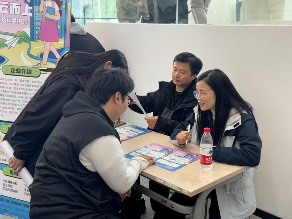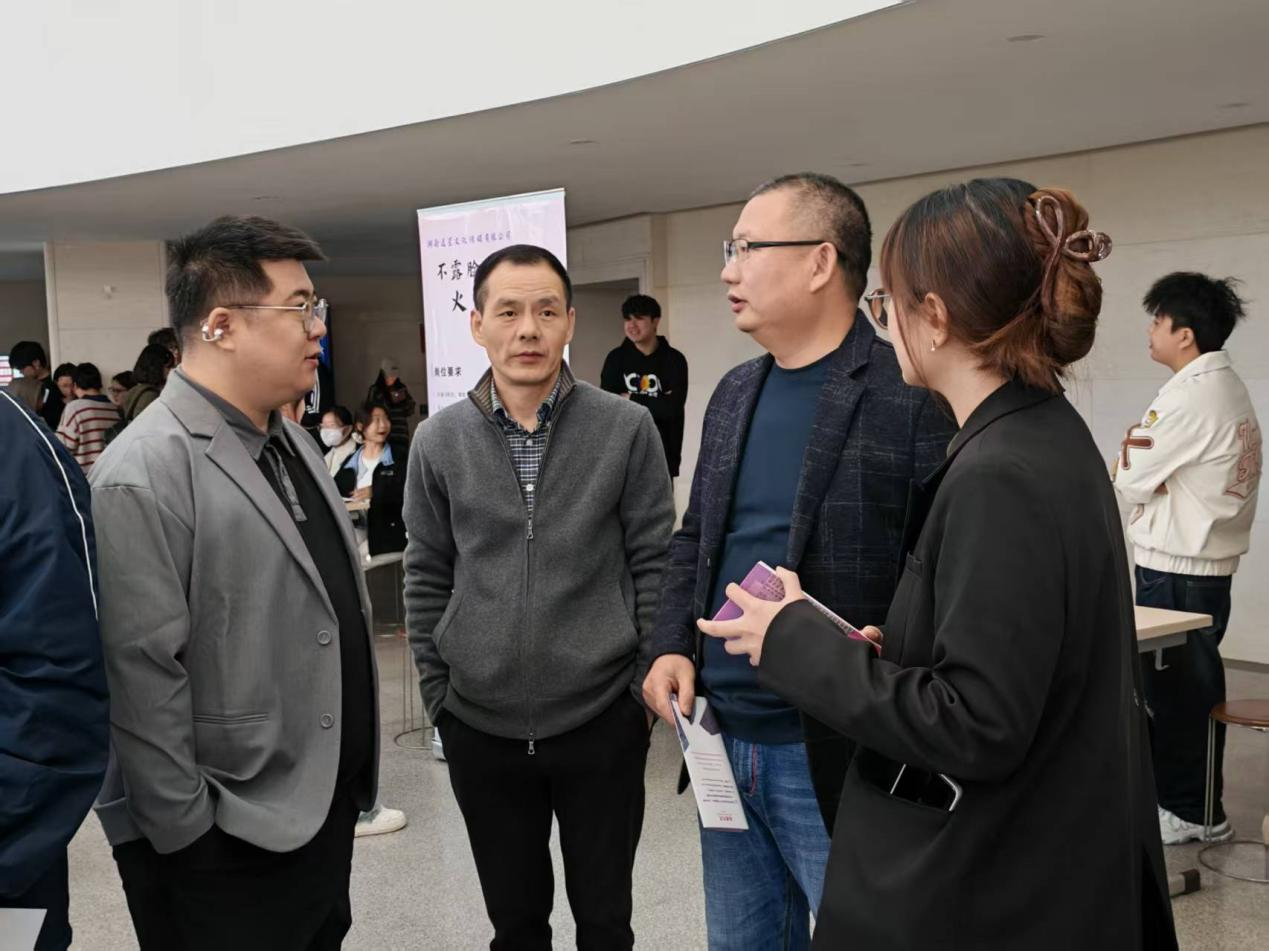 双选会现场求职氛围热烈,各招聘展位前围满手持简历的毕业生,有序咨询并沟通岗位信息。本次双选会汇聚了来自传媒、科技、教育等多领域的用人单位,为毕业生提供了契合专业方向与个人兴趣的多元选择;学院多位老师也全程在场,解答职业规划困惑、指导学生与企业高效交流,并结合不同专业求职需求提供针对性建议,切实发挥就业指导作用,全程为学生提供专业求职辅助。