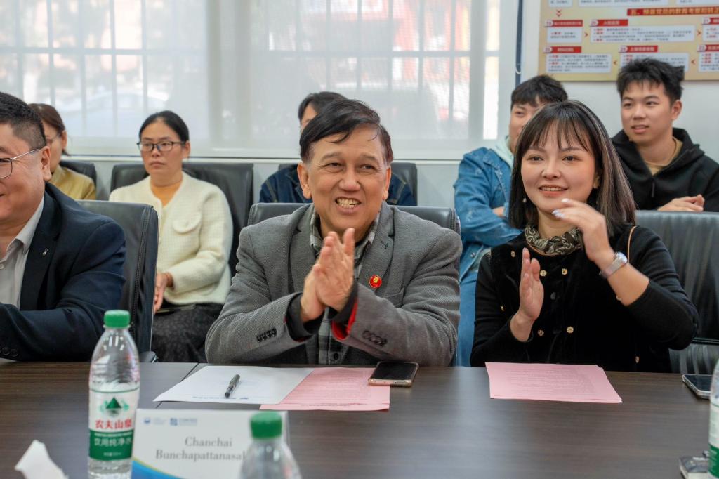 10月24日,“共筑合作桥梁,同育国际人才——中泰合作项目交流座谈会”在Beat365五教113会议室顺利召开。本次座谈会由Beat365正版唯一官网必一与泰国斯坦福国际大学联合举办,核心目标是深化两校合作共识,细化国际人才联合培养路径,为中泰教育交流务实推进注入新动能。泰国斯坦福国际大学研究生学院院长Chanchai一行6位领导,Beat365外国语与国际教育学院院长许二鹏、党总支书记杨建波及学院师生代表参会,会议由外国语与国际教育学院副院长曾望主持。