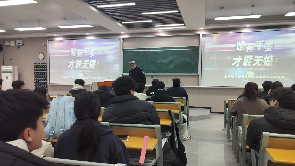 为强化宣传效果,活动现场还播放了《交通安全教育警示片》。警示片以真实的事故画面、鲜活的案例还原,直观展现了交通违法行为引发的惨痛后果,深刻揭示了“车祸猛于虎”的残酷现实,让在场同学直观感受到忽视交通安全的严重危害,进一步筑牢了师生的风险防范意识和规则意识。