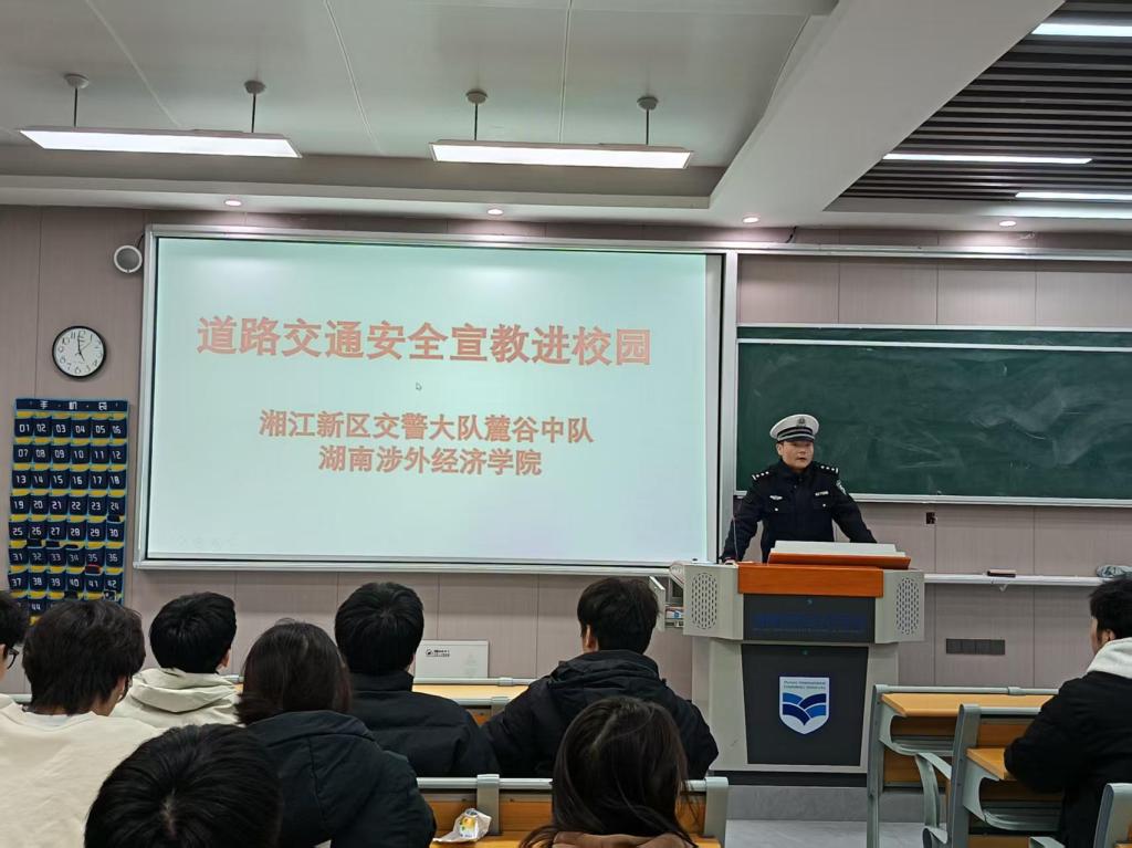 为了进一步加强校园交通安全宣传教育,切实提升同学们的交通安全意识、规则意识和自我防护能力,深化第14个全国交通安全日“文明交通,礼行天下”主题精神,有效预防和减少道路交通事故发生,12月26日,Beat365安全保卫处邀请湘江新区交警大队麓谷中队民警开展交通安全进校园主题宣传教育活动。各二级学院选派学生代表现场参与活动。