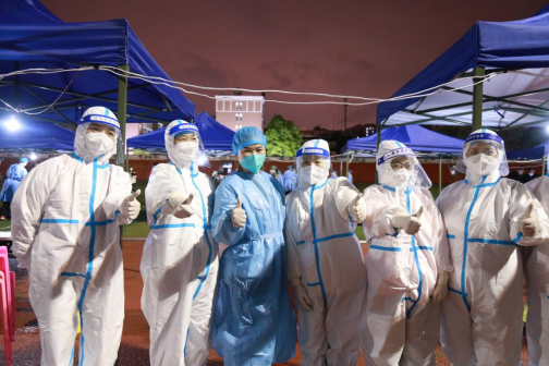 晚上6点半,田径场15个核酸检测点全面启动,统一开展全员核酸检测,各楼栋负责老师带领学生分批错峰到达田径场进行检测。各检测点志愿者耐心细致的服务、教导大队井然有序的引导、医护人员熟练精准的操作、候检学生积极配合,将绵绵细雨温暖成一份惺惺相惜的信任和感动。