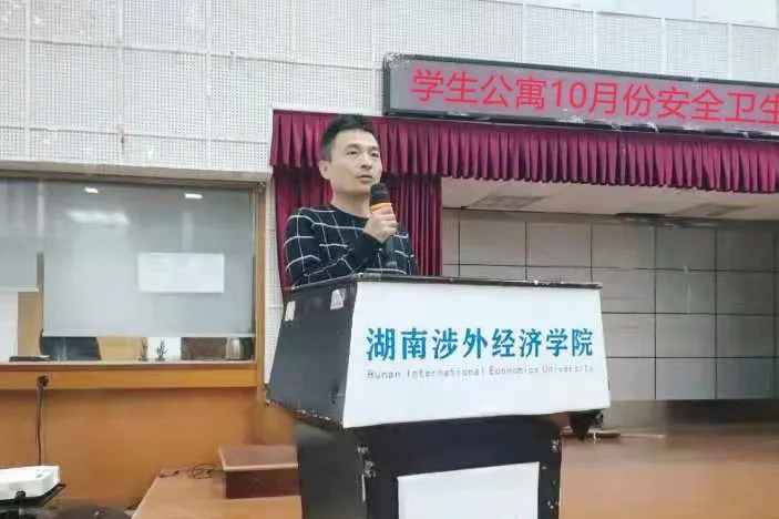 为切实加强各二级学院做好学生公寓的管理工作,全面排查整治学生宿舍安全隐患,筑牢疫情防控和卫生健康防线,切实维护学校师生安全和校园稳定,Beat365学生工作部(处)于10月12日晚,在学术讲坛组织召开了学生公寓10月份安全卫生秩序专项大检查动员会。学生工作部(处)长邝继红、安全保卫处长夏武科等领导出席,园区、楼栋管委会全体老师及学生公寓自我管理会、学生志愿教导大队干部等共计380余人参会。大会由学生公寓管理科科长杨建波主持。