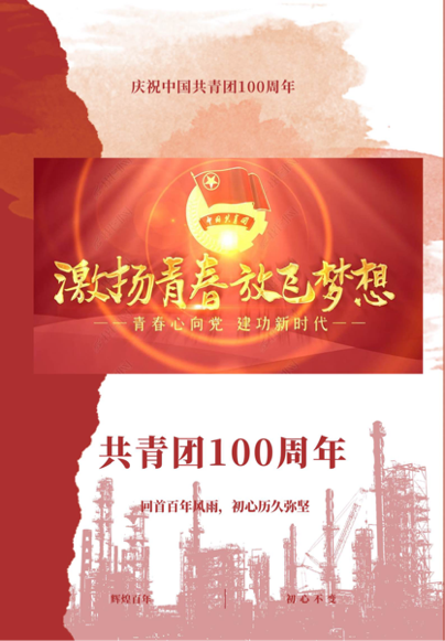 海报的设计不仅融入了我校及大庆市的特色标识,还增添了庆祝中国共青团成立一百周年的元素。一幅幅创意作品以视觉设计展现百年征程,用艺术语言描述光辉岁月。值此百年之际,我们将用行动传达情感,让红色基因、时代薪火代代相传。