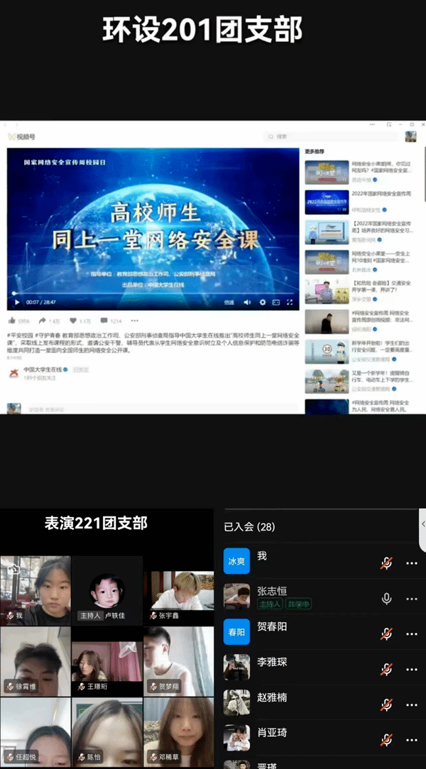 德赢官网各班团支部通过钉钉平台组织开展班会“同上一堂网络安全课”,全院共有39个教学班600余名同学参加了此次班会,在班会中讨论宣传网络安全知识,提高学生网络安全意识,增强识别和应对网络危险的能力,预防和应对网络暴力等方面知识,同时播放国家网络安全周公益短片。