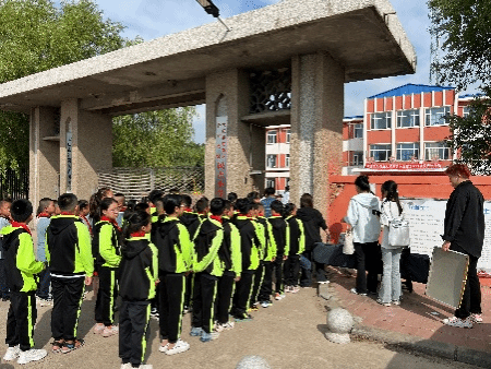 2个小时后,实践团抵达大庆市红岗区民吉小学,在大庆市红岗区民吉小学校长刘春冬带领下,举行“vwin德赢ac米兰官方网2024年暑期“三下乡”社会实践团对接启动仪式“。