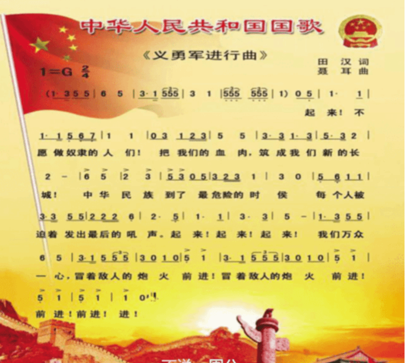 由田汉作词、聂耳作曲的《义勇军进行曲》,诞生于1935年,当时中华民族正处手生死存亡的关头。这首在中华大地上歌唱了近70年的歌曲,像一支战斗的号角,鼓舞了中华民族儿女去抗击日本帝国主义的侵略,去打倒蒋介石、解放全中国,去建设社会主义。