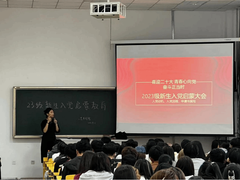 在入党流程方面,吕明珠老师也给23级新生进行了详细的讲解。入党大致分为递交入党申请书、党组织派人谈话、推荐和确定入党可积极分子、上级党委备案、指定培养联系人、培养考察教育、确定发展对象、确定入党介绍人、进行政治审查、党校培训、支部大会讨论、继续教育考察、提出转正申请、支部大会讨论、上级党委审批、材料归档十四个流程,吕明珠老师对这十四个方面分别进行了详细的讲解,让同学们对入党流程有了更加清晰的认知。
