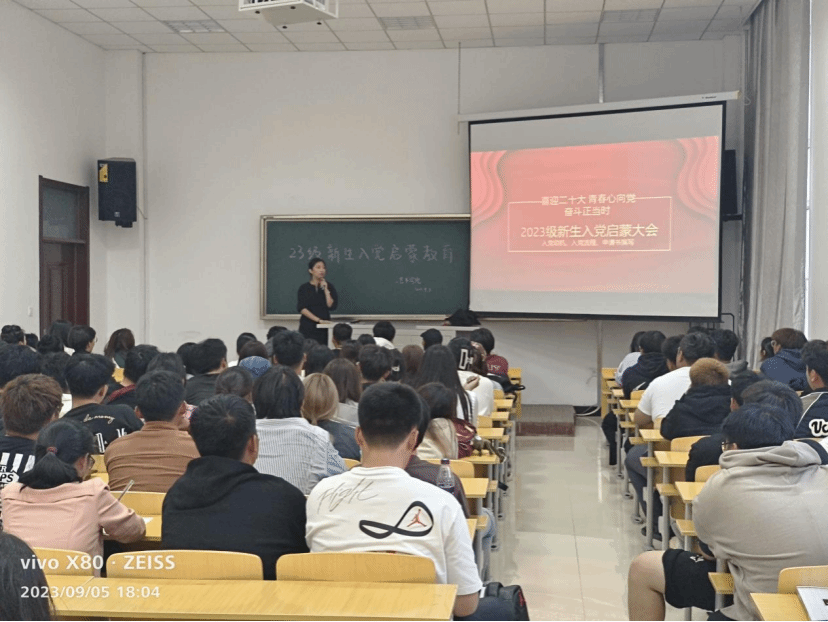 2023年9月5日晚18点,vwin德赢ac米兰官方网2023级新生入党启蒙教育大会在美术楼104教室举行。本次活动由vwin德赢ac米兰官方网大学生党支部书记吕明珠老师主讲,主题是“坚定入党信念,打好奋斗底色”。吕明珠老师从党的发展历程、入党申请书的撰写、入党流程和建设远大理想抱负四个方面进行了深入解读和讲解。