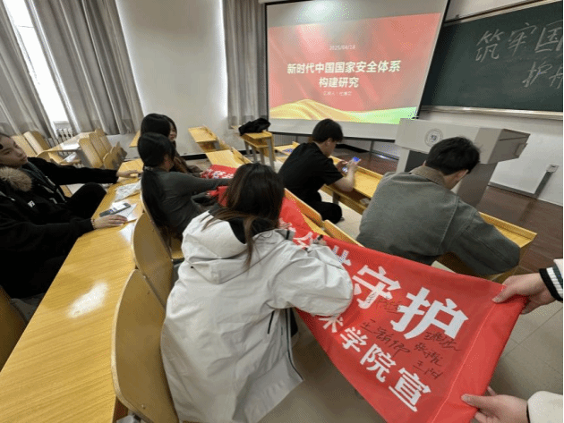 在讲座的互动环节,同学们踊跃提问,围绕国家安全与个人生活的关系、如何在日常生活中践行总体国家安全观等问题进行了深入交流。现场学习氛围热烈。讲座尾声,全体同学移步至签名区,在“青春筑梦新时代,国家安全共守护”的条幅上郑重签下自己的名字,庄严宣誓将以青春力量守护国家安全,践行维护国家安全的使命担当。