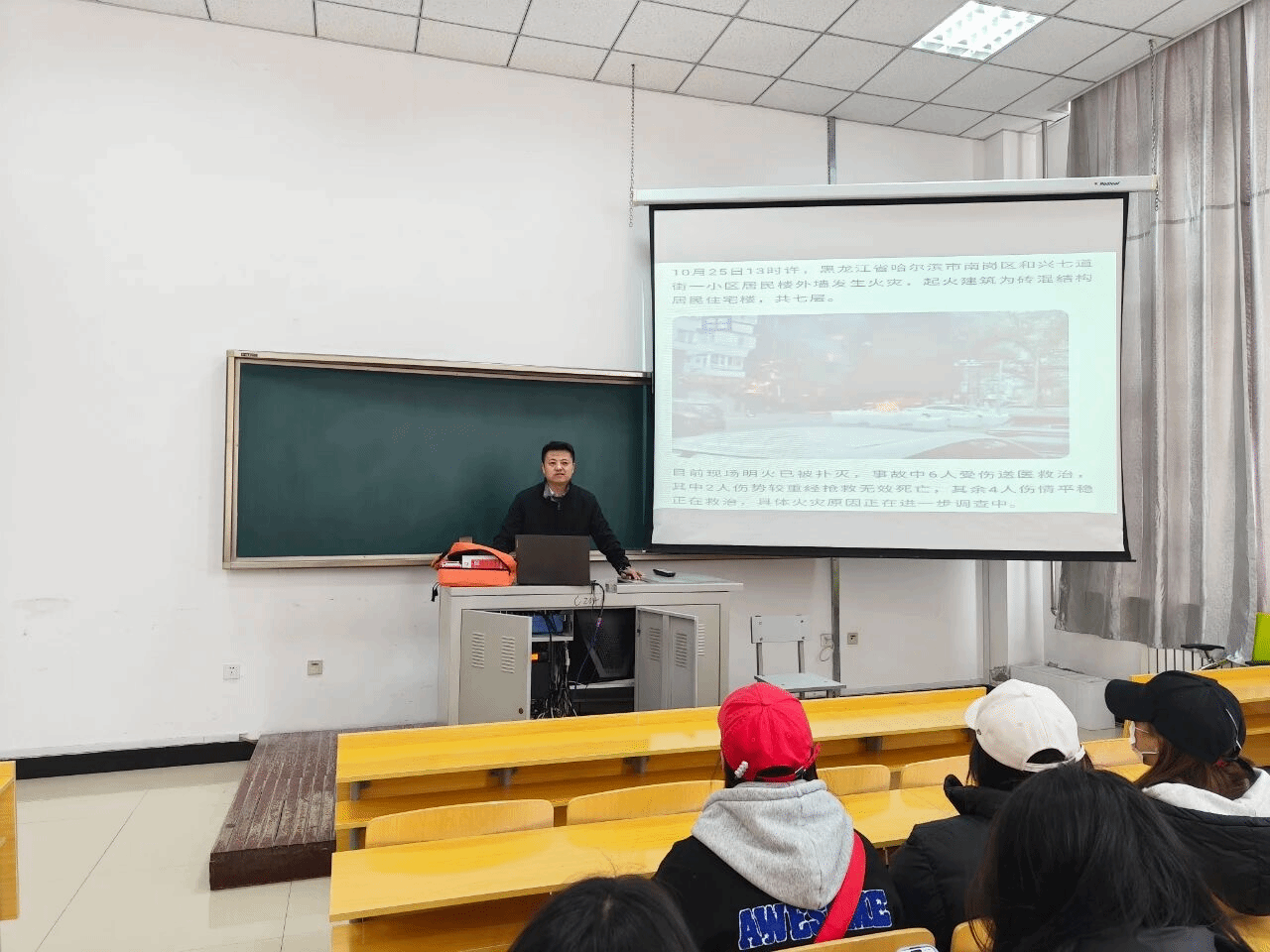 讲座伊始,宋主任通过播放一系列近年来春季火灾的真实案例视频,让触目惊心的火灾场景直观呈现在师生眼前,让大家深刻认识到火灾的严重危害。紧接着,宋主任结合校园建筑布局与学生日常行为特点,详细分析教学楼、学生宿舍、图书馆等重点区域潜在的火灾隐患,如私拉乱接电线、在宿舍使用大功率违规电器等行为的危害。理论知识讲解后,宋主任进行消防设备实操演示,向师生们介绍灭火器、消火栓等消防器材的使用方法,通过“一提、二拔、三握、四压”的口诀,让师生迅速记住灭火器操作要领。此外,众安科普安全中心与学院工作人员还进行了模拟消防演练,确保在火灾发生时能够迅速有序地疏散,做到防患于未然,确保自己的安全。