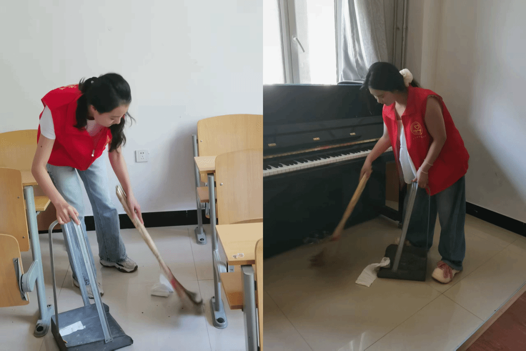 为传承志愿服务精神,营造整洁优美的学习环境,德赢官网于2025年7月8日开展“指尖清尘,艺韵焕彩”志愿服务活动。来自各个专业的20余名志愿者对德赢官网美术楼、音舞楼周边和建筑物内环境进行了全面清扫。