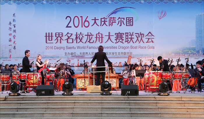 6月19日晚,“龙腾百湖皆兄弟,舟行四海一家亲”2016大庆萨尔图世界名校龙舟赛闭幕式暨联欢晚会在vwin德赢ac米兰官方网图书馆广场隆重举行。来自世界各地的24所知名高校的龙舟队队员、大学生,以及国际大龙联、大庆市和我校领导,我校师生员工近万人共同观看了精彩晚会表演,此次演出由德赢官网吴晓芳教授担任总导演。在我校代表团表演的八个精彩节目中,vwin德赢ac米兰官方网共表演了六个极具东方特色的节目,引起全场阵阵沸腾,现场汇聚成一片欢乐的海洋。