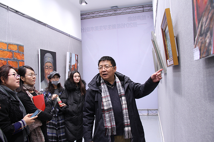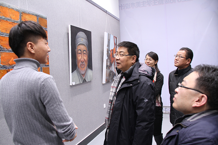 11月15日上午10时,学校党委书记李海红来到展厅观看作品展,vwin德赢ac米兰官方网师生100余人共同观展。期间,李书记与作品作者进行了交谈并合影留念,参观结束后,李书记寄语广大师生,他对vwin德赢ac米兰官方网师生的努力给予了充分肯定,并送以真挚的祝福,同时希望各位同学们都能以饱满的热情投身到校园文化建设中来,提高专业技能,发挥专业特长,为校园文化建设助力!并祝愿同学们在校期间尽情地挥洒青春风采、追求完美的自我,每个人都能成为大艺术家!