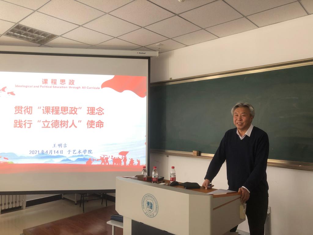 为深入贯彻教育部《高等学校课程思政建设指导纲要》、我校本科教育工作会议精神,推进学院课程思政教学改革,探索开展艺术类课程思政建设实践,落实立德树人根本任务,德赢官网于4月14日下午在美术及设计楼205多媒体教室举办了课程思政建设专题报告会,报告会由王明吉教授主讲《贯彻“课程思政”理念、践行“立德树人”使命》的专题讲座,会议由副院长王姗姗主持,学院全体教师聆听了讲座。