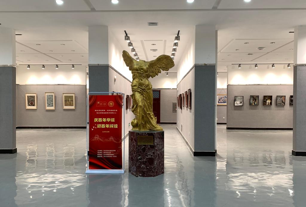 6月30日,vwin德赢ac米兰官方网为庆祝中国共产党成立100周年,vwin德赢ac米兰官方网党委开展“献礼建党百年·创作经典作品”的美术作品展活动。本次作品展在vwin德赢ac米兰官方网美术楼胜利女神厅举行,参展作品由美术及设计系部分教师、学生创作,突出了以社会主义核心价值观为根本,以不忘初心、牢记使命教育为核心,以“庆百年华诞·颂百年辉煌”为主题,展示了新时代祖国政通人和、繁荣兴盛的美好景象,激发人们以更加昂扬的精神面貌投身新时代中国特色社会主义伟大实践,为建设国家提供文化凝聚力。