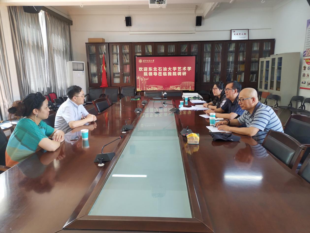 6月22日上午,院党委书记张金辉、院长林庆华、美育中心副主任李宝伟、研究生秘书毕光锐一行4人到武汉纺织大学艺术与设计学院进行调研工作,艺术与设计学院院长傅欣、副院长刘凡,热情接待了调研团队并参加座谈。