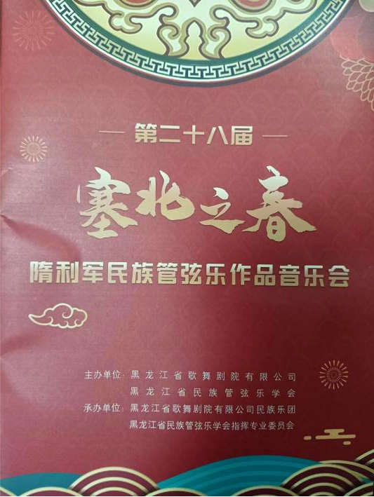 2024年1月19日第二十八届“塞北之春”隋利军作品音乐会在黑龙江省歌舞剧院音乐厅隆重上演、由黑龙江省歌剧舞剧院、黑龙江省民族管弦乐学会主办、省歌剧院民乐团、省民管会指挥专业委员会协办,邀请黑龙江省八位优秀指挥家共同为此次音乐会执棒、音乐会演奏了著名作曲家隋利军先生的十一首作品,首演作品四首。德赢官网教师盖广胜应邀指挥并首演了群笛与乐队《鹤鸣之舞》。这也是德赢官网教师首次与黑龙江省最优秀的职业乐团合作,对于促进vwin德赢ac米兰官方网学科发展,加强与专业乐团的交流合作,为宣传和推动德赢官网舞台教学实践发展起到了重要作用。通过与省歌剧院民乐团的合作,完美展示了音乐作品,反映了东北地方音乐特色及人与自然和谐相处的黑土文化。受到了专家的肯定和观众的好评。为哈尔滨市民奉献了一场精彩的视听盛宴。参加音乐会的有中国民族管弦乐学会、黑龙江省文化旅游厅、省歌舞剧院领导以及国际友人等。此次音乐会也为时下热闹非凡的黑龙江省冰雪文化增光、添彩。20日上午在黑龙江省歌剧舞剧院会议室举办“隋利军民族管弦乐作品”研讨会,盖广胜老师参会并发言。为此次活动划上完美句号。
