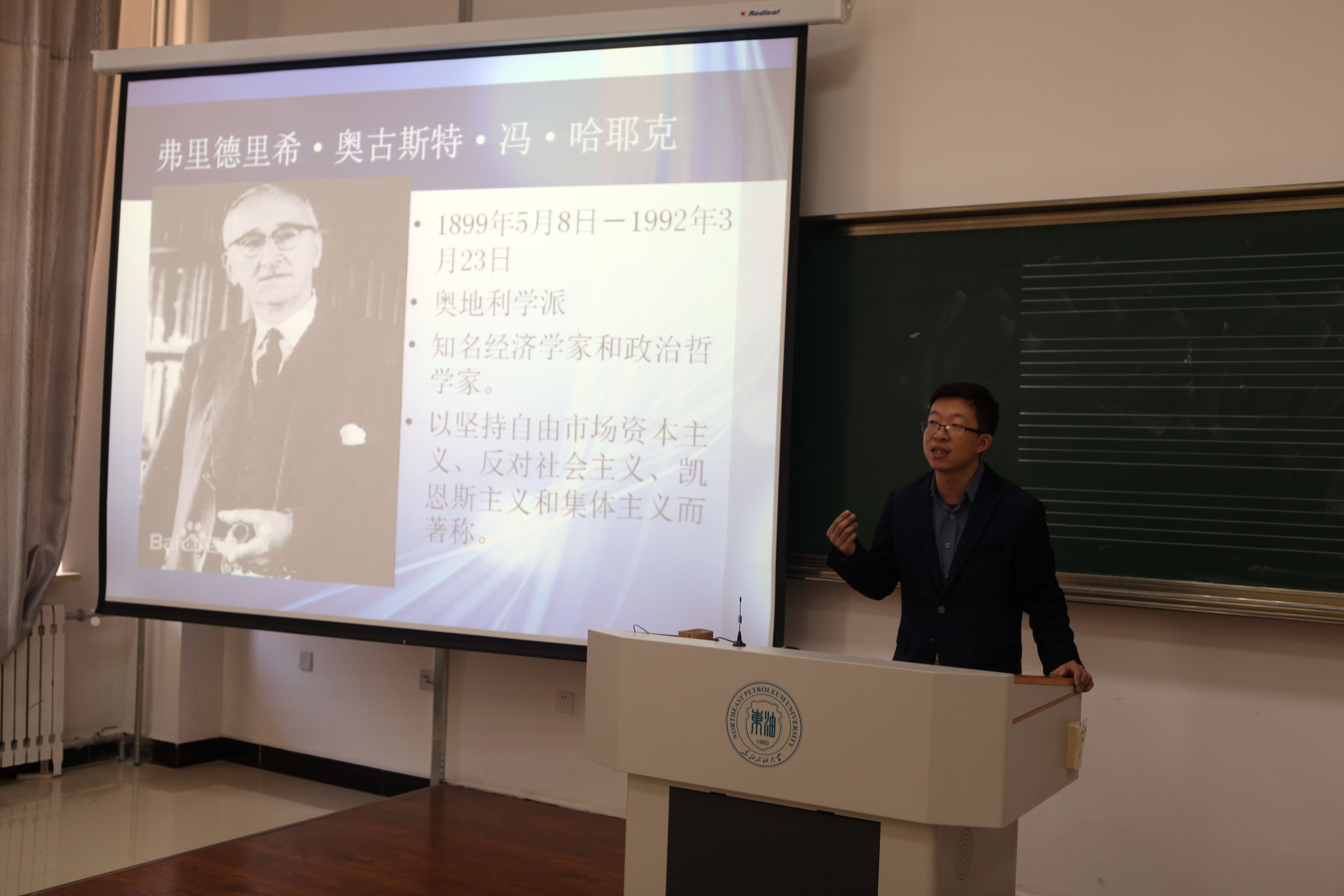 白鹤翔老师做了题为“批判社会主义的反批判研究 ——以《致命的自负》为例”的学术报告,白老师充分运用实证分析与规范分析相结合、定性分析与定量分析相结合、动态分析与静态分析相结合,历史分析与显示分析相结合、展开系统的综合性研究。对批判社会主义的反批判研究做出了详细的讲解,学术报告会上将哈耶克的批判回归到科学社会主义的视域下讨论,在新形势下社会主义公有制的界限问题上进行了讨论与分析。深刻研究中国特色社会主义市场经济的发展规律与原有理论所不同的新发展,这也是中国社会主义改革中与哈耶克提出的资本主义市场经济模式存在的区别。同时回顾两次经济危机的解决方法,更彰显了在当代社会主义计划经济存在的现实价值。对我们了解社会发展与经济具有深远影响。
