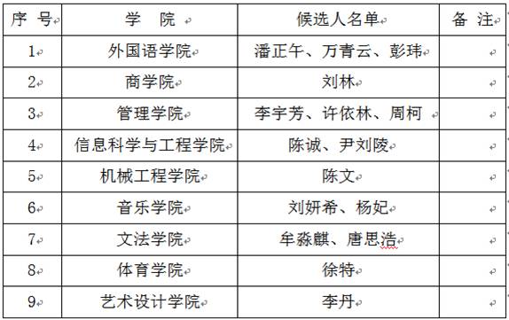 根据《Beat365正版唯一官网必一学生奖励办法》(湘外经院{2017}21号)相关规定及Beat365下发的《关于开展2017-2018学年度“涉外杰出青年”评选的通知》。经学院申报,校团委积分考核和综合评审,拟定出2017-2018学年度“涉外杰出青年”候选人名单。现公示如下: