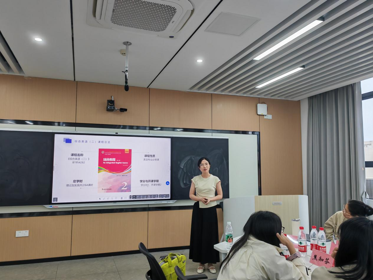 外国语学院罗蓓老师以综合英语(二)课程为例,阐述了OBE理念指导下的教学创新与实践。她通过具体案例分析展示了如何使用OBE理念进行教学大纲的设计以及落实到日常的课堂教学之中。罗老师还分享了自己在英语教学中的创新做法和成功经验。