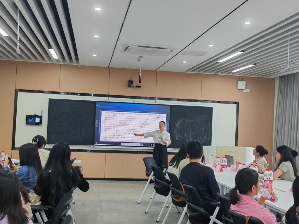 商学院刘滨睿老师分享了OBE理念与教师教学创新大赛相结合的竞赛技巧。他认为一堂好课应当具备内容充实、学生参与度高、课堂氛围热烈和育人功能强等特点。刘老师现场分享了“以学生为中心”课堂模式,为现场老师提供了宝贵的借鉴和启示。