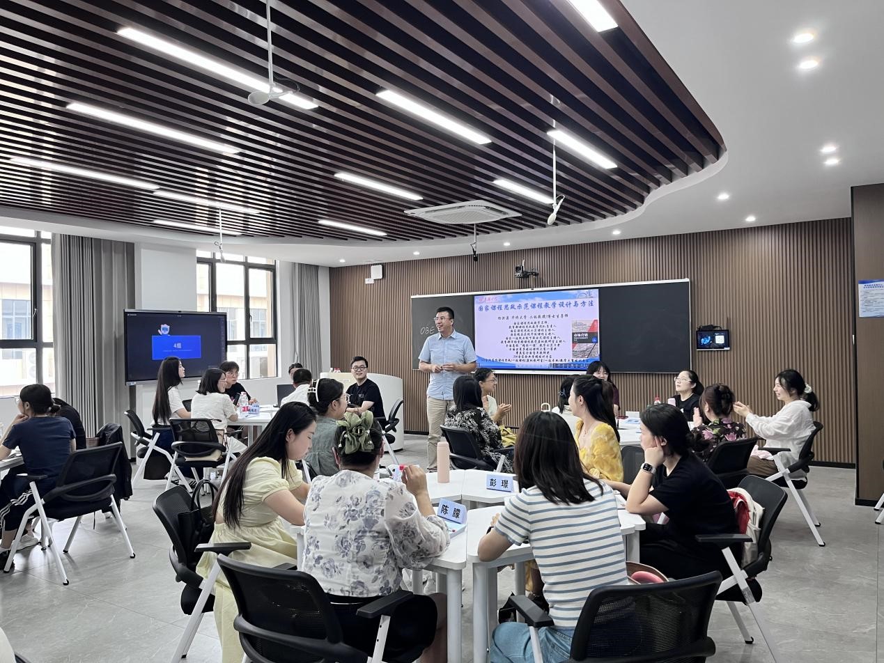 工作坊活动过程中杨洪涛教授就课程思政示范课程教学设计与实施引导并组织老师们进行教学经验交流、分享。刘思诺、唐璐瑶、王欢与陈镯潍等老师积极参与分享与展示,逐一与杨教授探讨课程思政元素的选择、课堂中思政内容融入与如何进行教学设计等,现场氛围热烈。