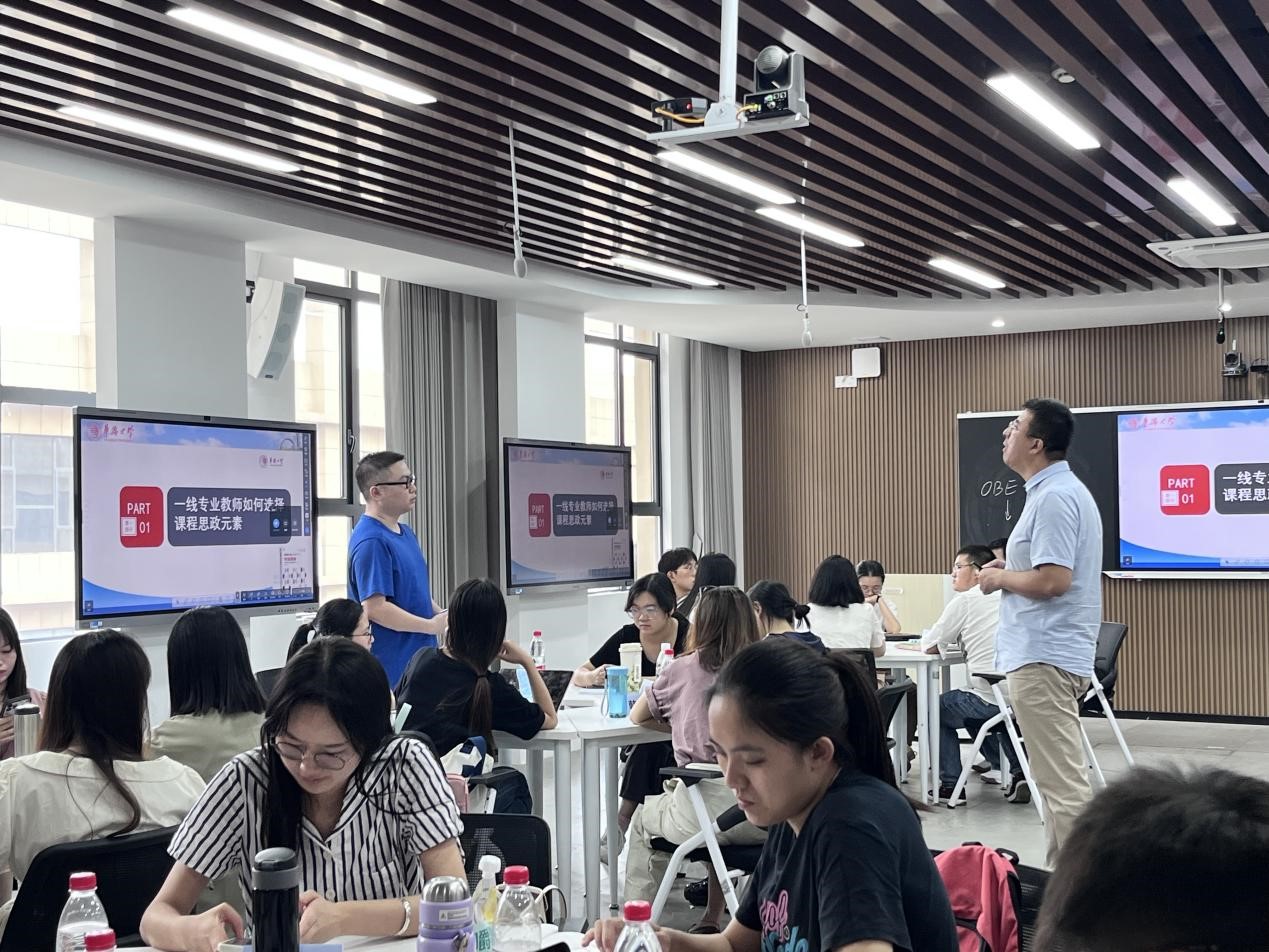 本次教学工作坊邀请华侨大学博士生导师、国家首批课程思政教学名师杨洪涛教授主讲。杨教授从“如何选择课程思政元素”开题,对“如何构建课程思政总体设计、如何开展课程思政教学实践和设计课程思政教学过程”进行了深入浅出的论述,为老师们提供了实施路径与方法。