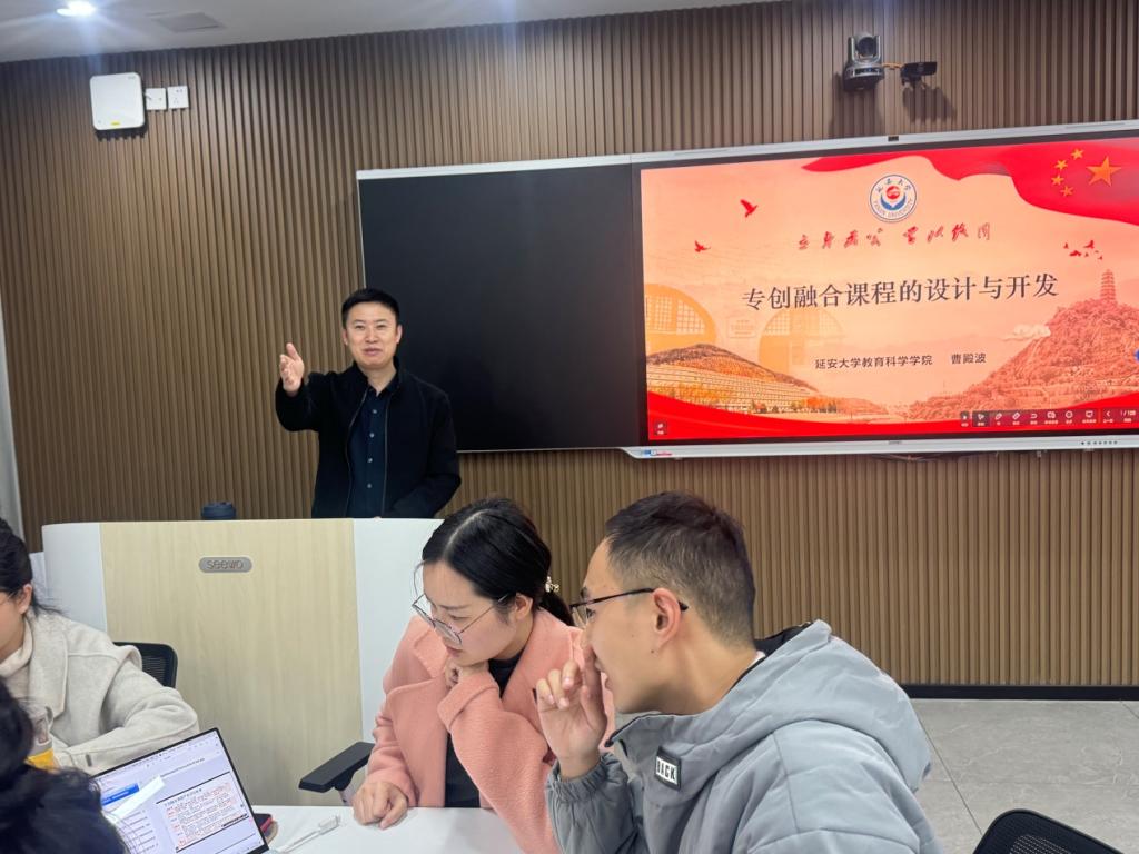 11月21日下午,人力资源处(教师教学发展中心)邀请延安大学教育科学学院教学副院长、副教授曹殿波,以“专创融合课程的设计与开发”为主题,在教师教学发展中心510为全体参训教师带来了一场耳目一新、精彩纷呈的工作坊培训。来自各二级学院40余名教师参训,此次培训由人力资源处副处长彭伊凡主持。