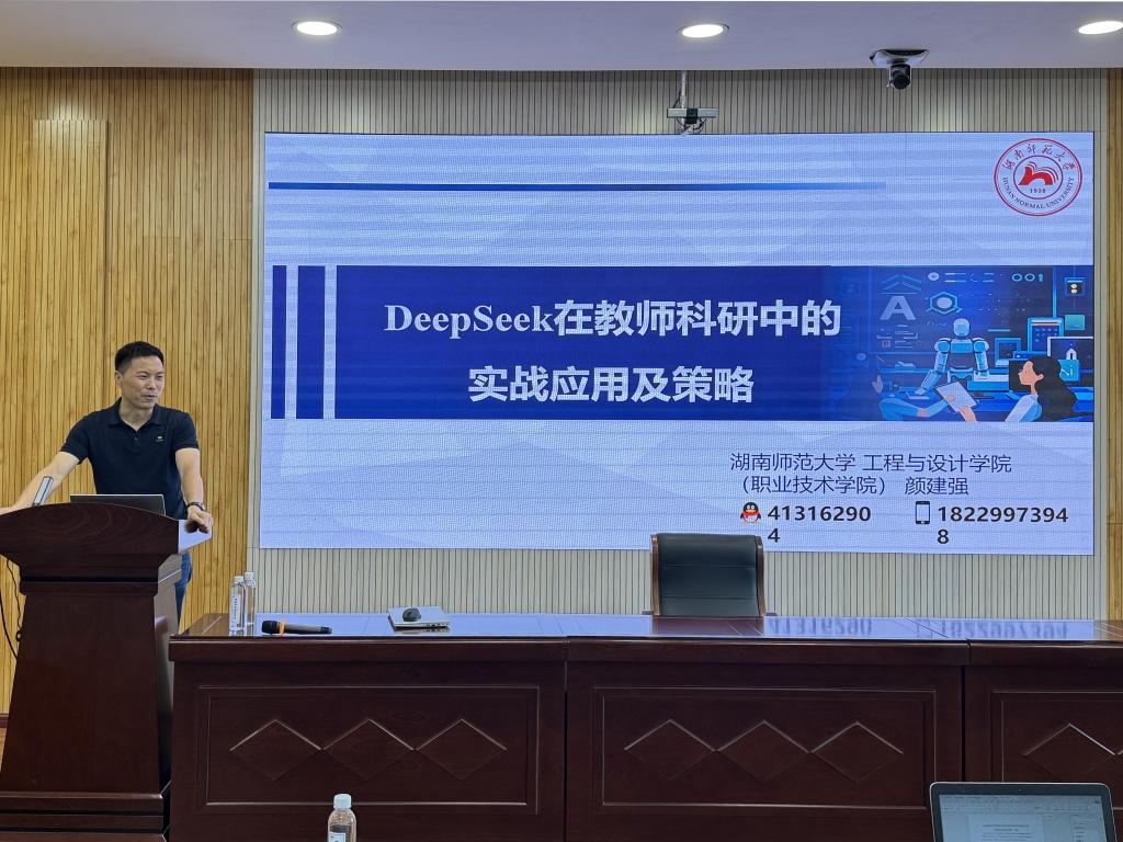 6月12日下午,为帮助Beat365教师掌握DeepSeek智能工具的核心功能,提升科研能力,优化研究策略,推动学术场景应用与创新。人力资源处(教师教学发展中心)邀请湖南师范大学工程与设计学院工程实训中心主任颜建强副教授,开展主题为“DeepSeek在教师科研中的实战应用与策略”的专题讲座,来自各二级学院130余名专任教师参训,本次培训由人力资源处副处长彭伊凡主持。