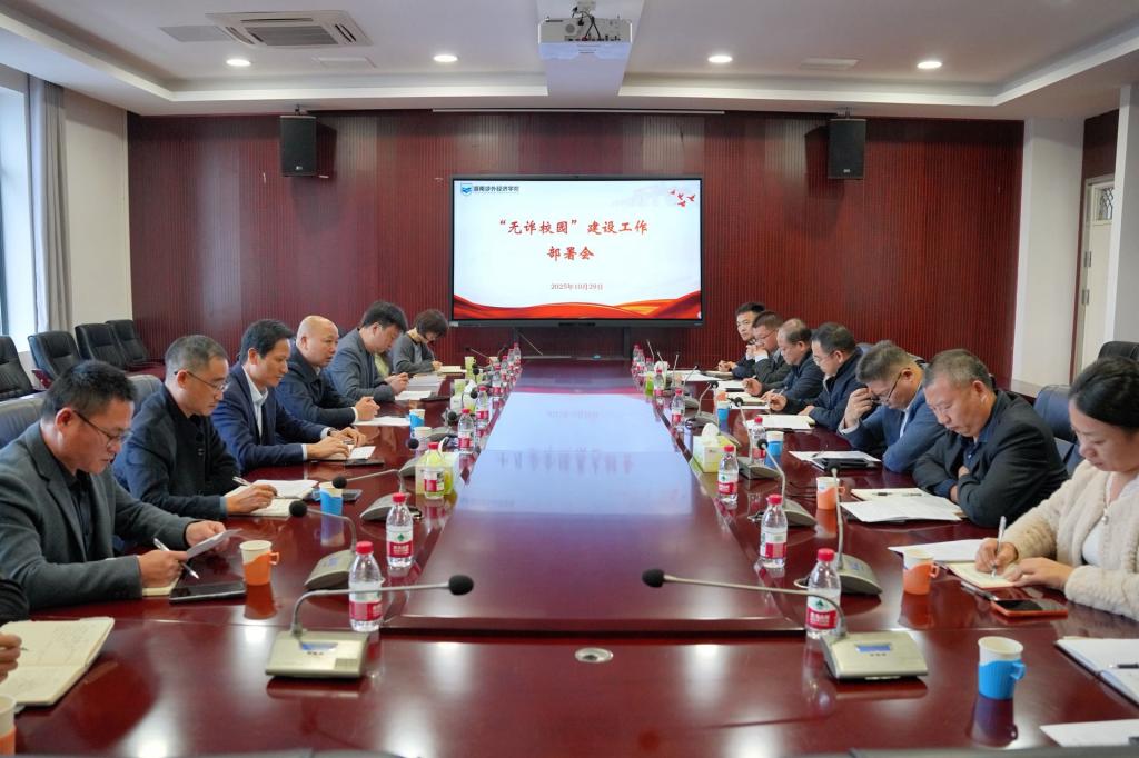 为深入贯彻落实全省教育厅关于“无诈校园”建设工作的部署要求,全面提升师生防范电信网络诈骗的意识和能力,切实维护校园安全稳定与师生财产安全,10月29日上午,学校在综合楼会议室组织召开“无诈校园”建设工作部署会议。副校长汪东明,校长助理徐京都出席会议,安全保卫处、党委宣传部、团委、信息技术处等相关职能部门负责同志及各二级学院党总支书记参加会议。会上,安全保卫处处长夏武科按照《Beat365正版唯一官网必一“无诈...