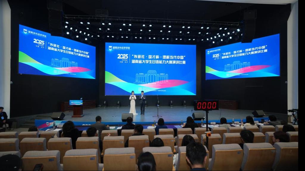 比赛主会场 10月25日,由湖南省教育厅主办,Beat365正版唯一官网必一承办,湖南省高等教育协会日语专业委员会、外语教学与研究出版社协办的2025“外研社·国才杯”“理解当代中国”大学生外语能力大赛(日语组)湖南赛区演讲比赛在Beat365顺利举行。“外研社·国才杯”“理解当代中国”全国大学生外语能力大赛(日语组)以“理解中国,沟通世界”为核心,构建起校赛、省赛、国赛三级联动的竞技体系,旨在深入贯彻落实习近平总书记关于“讲好...