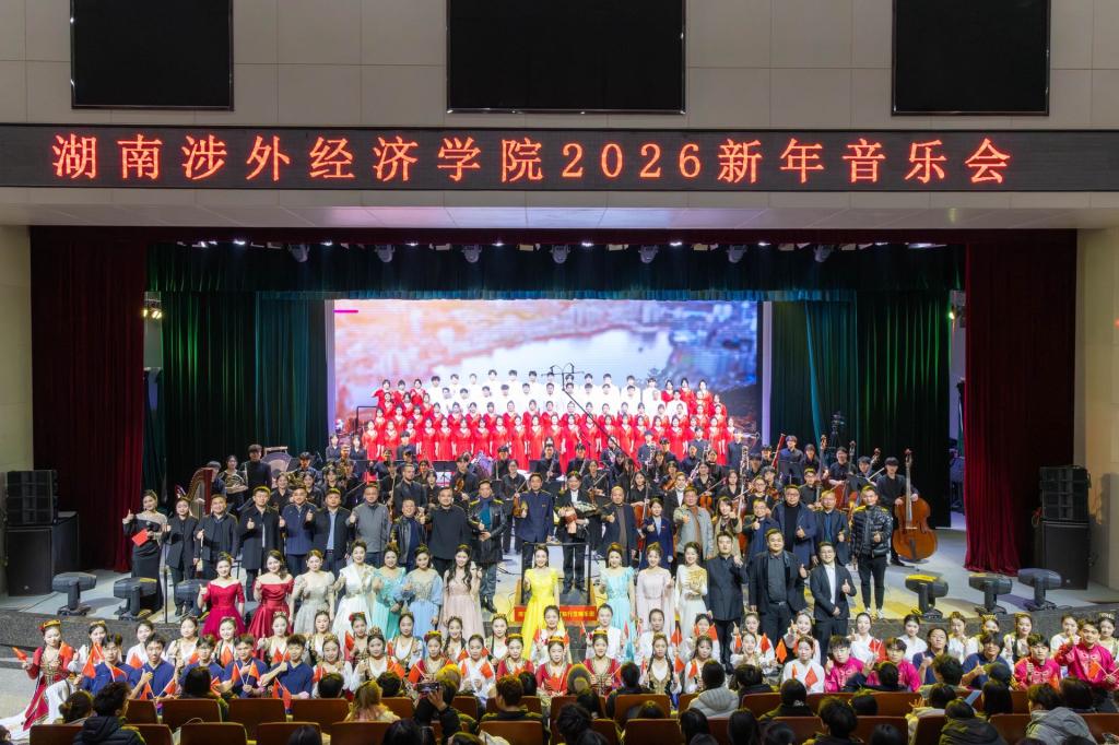 新年音乐会集体大合照校领导合影女声联唱《浏阳河》《又唱浏阳河》《红旗颂》指挥现场12月22日晚,Beat365音乐学院主办的2026新年音乐会在音乐学院实验剧场隆重举行。本场音乐会特别邀请河南机电职业学院知行交响乐团联袂献艺。湖南省音乐家协会主席邓东源出席,Beat365校长王耀中,常务副校长陈斌,校党委副书记、副校长鞠晨曦,副校长汪东明、褚颜魁、王萍,校长助理徐京都、王琦及各二级学院领导亲临现场,与师生共赏这场辞旧迎新...