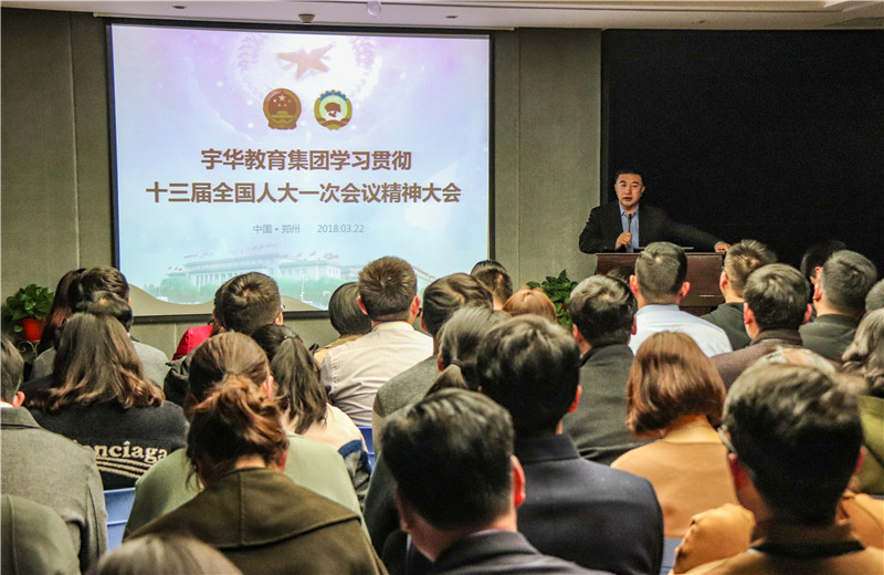 3月22日下午,宇华教育集团在集团总部会议室召开集团学习贯彻十三届全国人大一次会议精神大会。全国人大代表,宇华教育集团董事长李光宇作专题报告,宇华教育集团下属位于河南省内的大学、中小学、幼儿园中层干部参加了会议。会议重点传达了习近平总书记重要讲话精神、政府工作报告关于教育的部署,全国人大常委会、全国政协常委会报告中有关教育的主要内容等,并对宇华教育集团深入贯彻落实十三届全国人大一次会议精神作了全面...